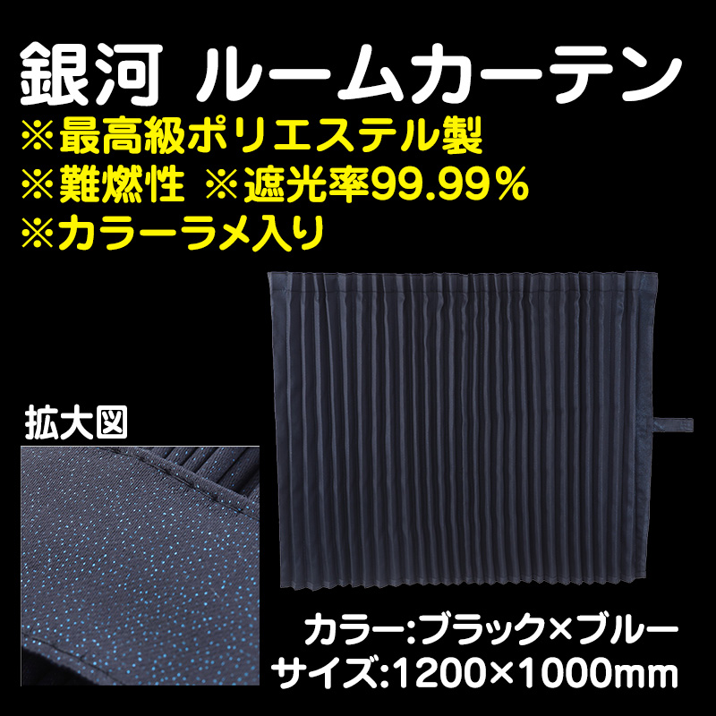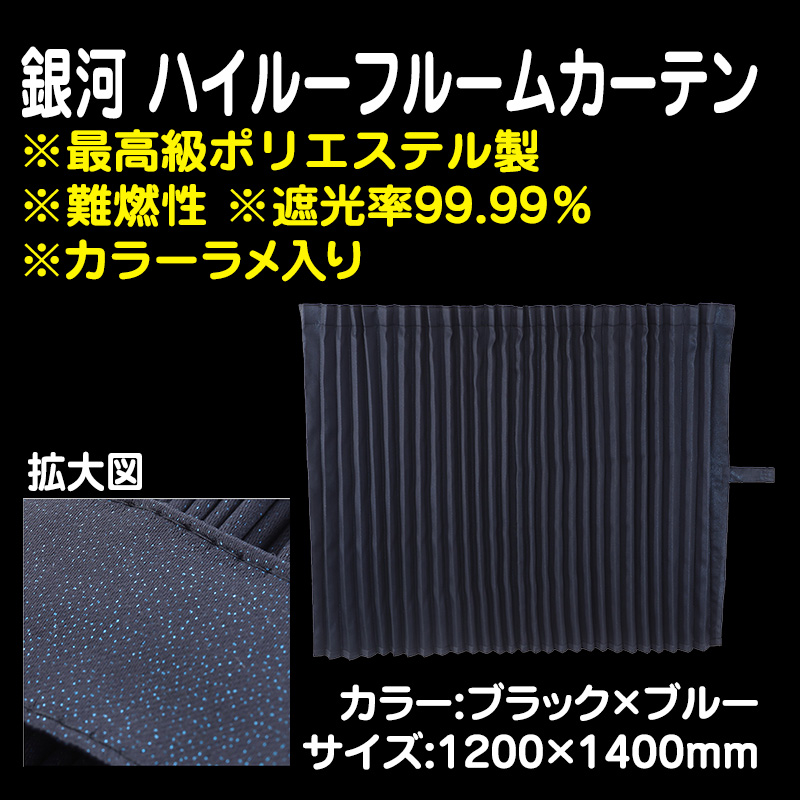 ラメ入り銀河アコーディオン式ハイルーフルーム(センター)カーテン ブラック×ブルー ※ハイルーフセンター 1200×1400mm(一級遮光・難燃製) 【2枚1台分】