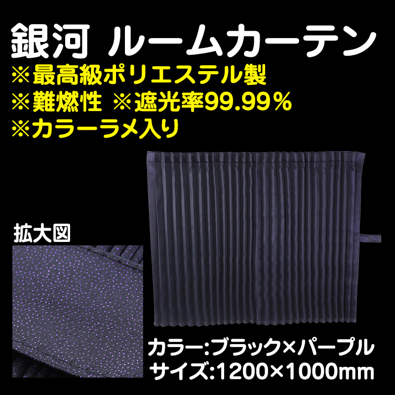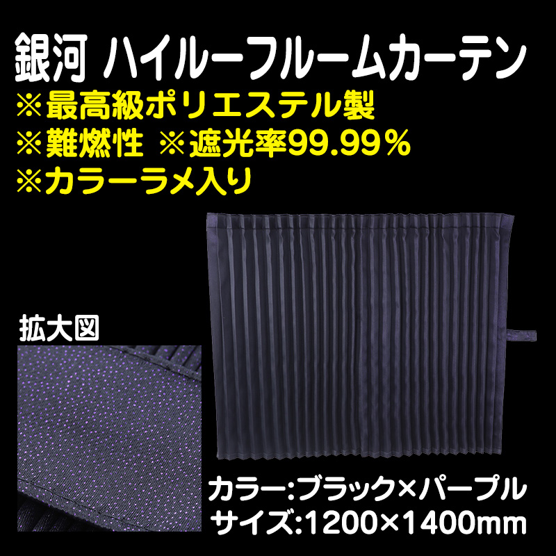 ラメ入り銀河アコーディオン式ハイルーフルーム(センター)カーテン ブラック×パープル ※ハイルーフセンター 1200×1400mm(一級遮光・難燃製) 【2枚1台分】