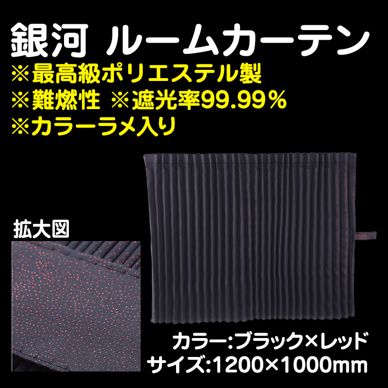 ラメ入り銀河アコーディオン式ルーム(センター)カーテン ブラック×レッド ※標準ルーフセンター 1200×1000mm(一級遮光・難燃製)【2枚1台分】