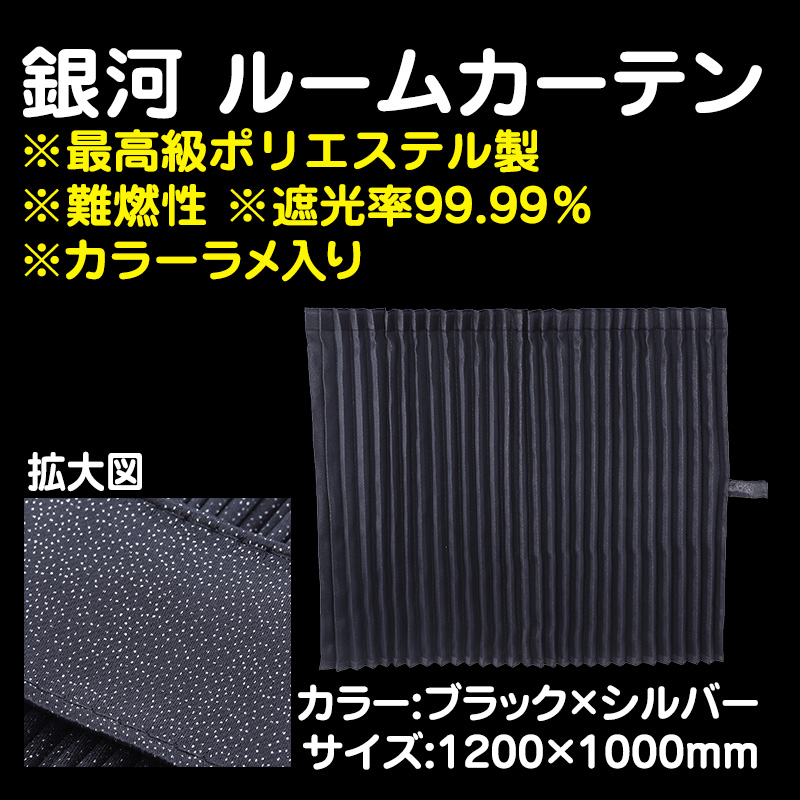 ラメ入り銀河アコーディオン式ハイルーフルーム(センター)カーテン ブラック×シルバー ※ハイルーフセンター 1200×1400mm(一級遮光・難燃製) 【2枚1台分】