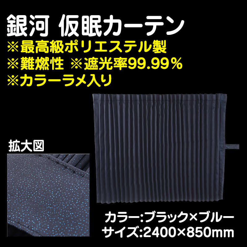 ラメ入り銀河アコーディオン式仮眠カーテン ブラック×ブルー 2400×850mm(一級遮光・難燃製) 【2枚1台分】