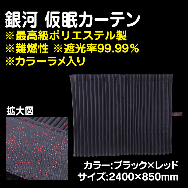 ラメ入り銀河アコーディオン式仮眠カーテン ブラック×レッド 2400×850mm(一級遮光・難燃製) 【2枚1台分】