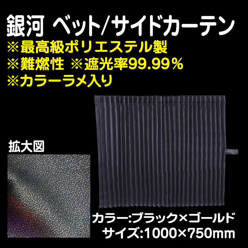 ラメ入り銀河アコーディオン式ベット/サイドカーテン ブラック×ゴールド 1000×750mm (一級遮光・難燃製)ブラック×ラメ5色 【2枚1台分】