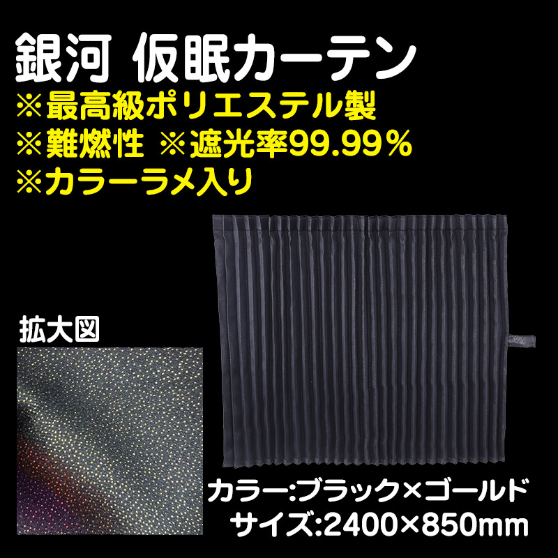 ラメ入り銀河アコーディオン式仮眠カーテン ブラック×ゴールド 2400×850mm(一級遮光・難燃製) 【2枚1台分】