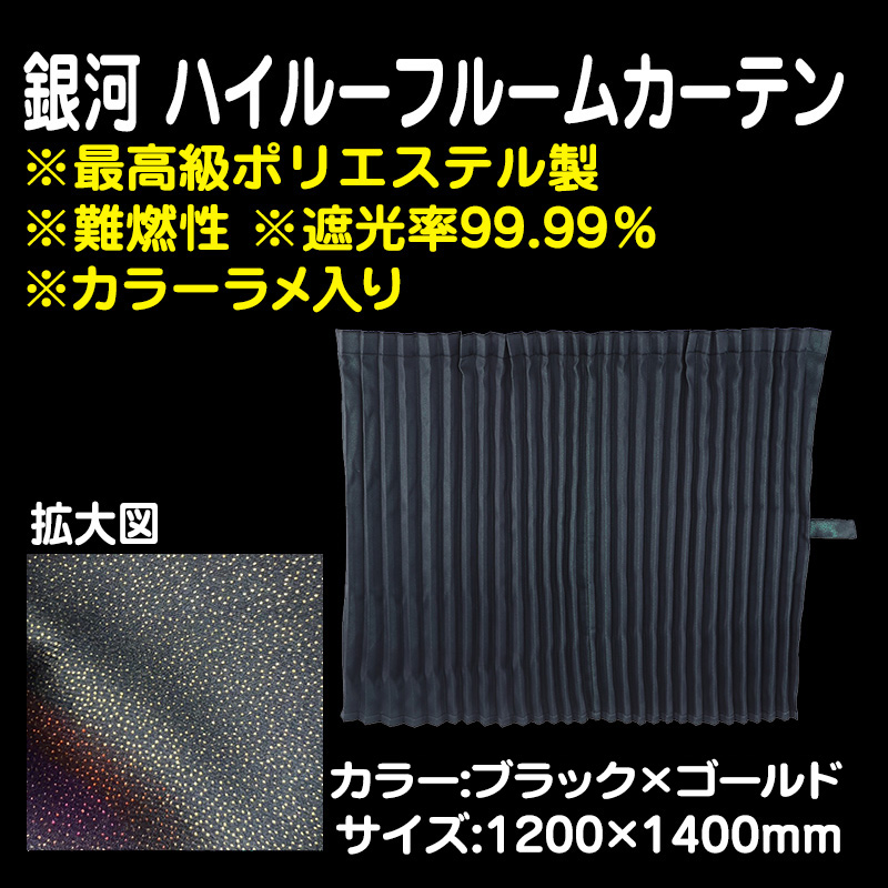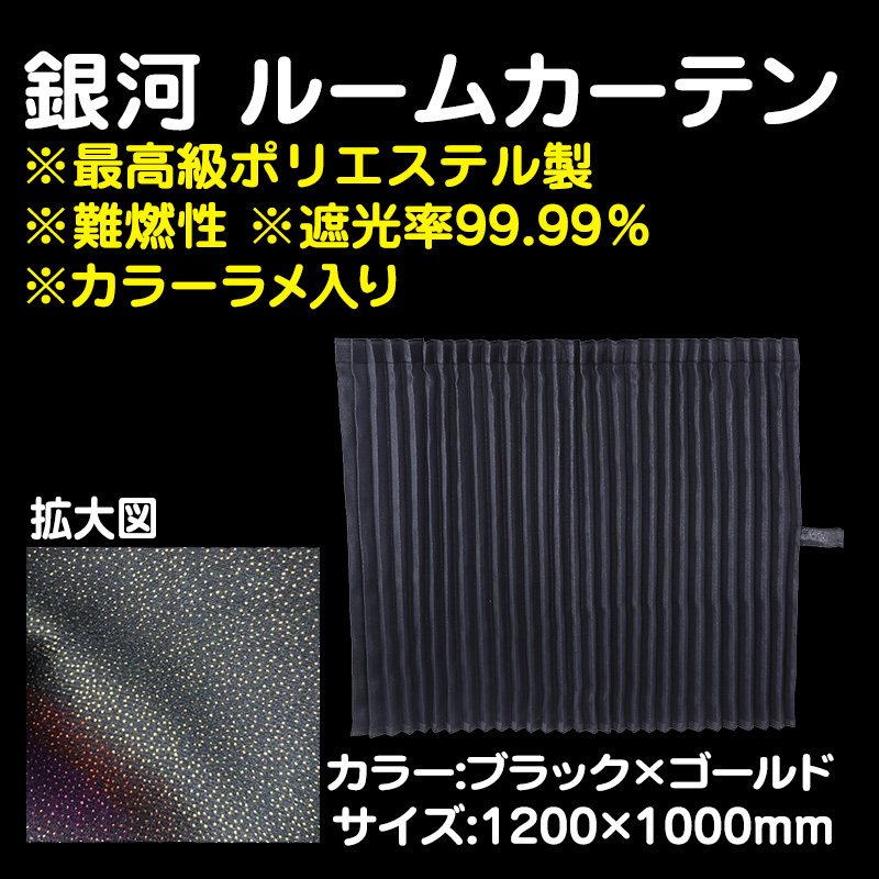 ラメ入り銀河アコーディオン式ハイルーフルーム(センター)カーテン ブラック×ゴールド ※ハイルーフセンター 1200×1400mm(一級遮光・難燃製) 【2枚1台分】
