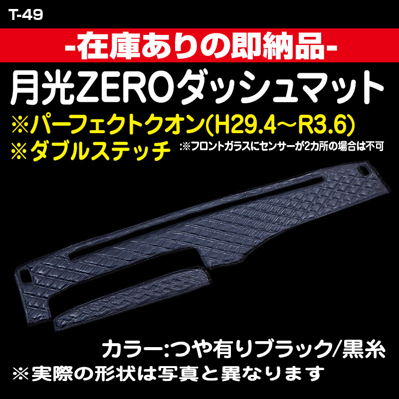 T49 <即納品> 月光ZEROダッシュマット(ダブルステッチ) つや有りブラック/黒糸 -パーフェクトクオン(フロントガラスにセンサー2箇所車は取付不可) (H29.4〜R3.6)-