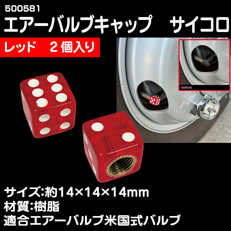 エアーバルブキャップ サイコロ 2個入り【レッド】 #500581