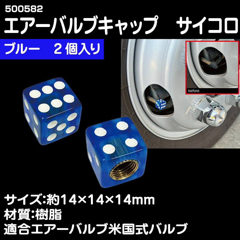 エアーバルブキャップ サイコロ 2個入り【ブルー】 #500582