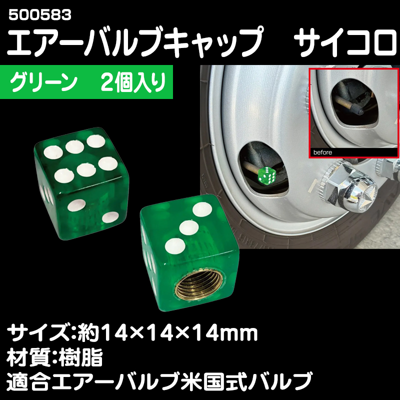 エアーバルブキャップ サイコロ 2個入り【グリーン】 #500583