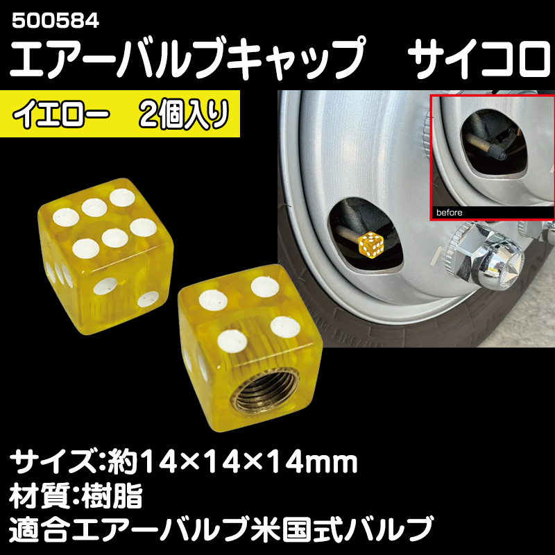 エアーバルブキャップ サイコロ 2個入り【イエロー】 #500584