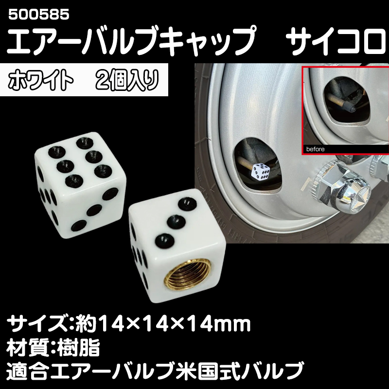 エアーバルブキャップ サイコロ 2個入り【ホワイト】 #500585