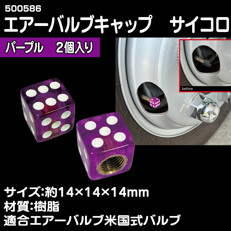 エアーバルブキャップ サイコロ 2個入り【パープル】 #500586