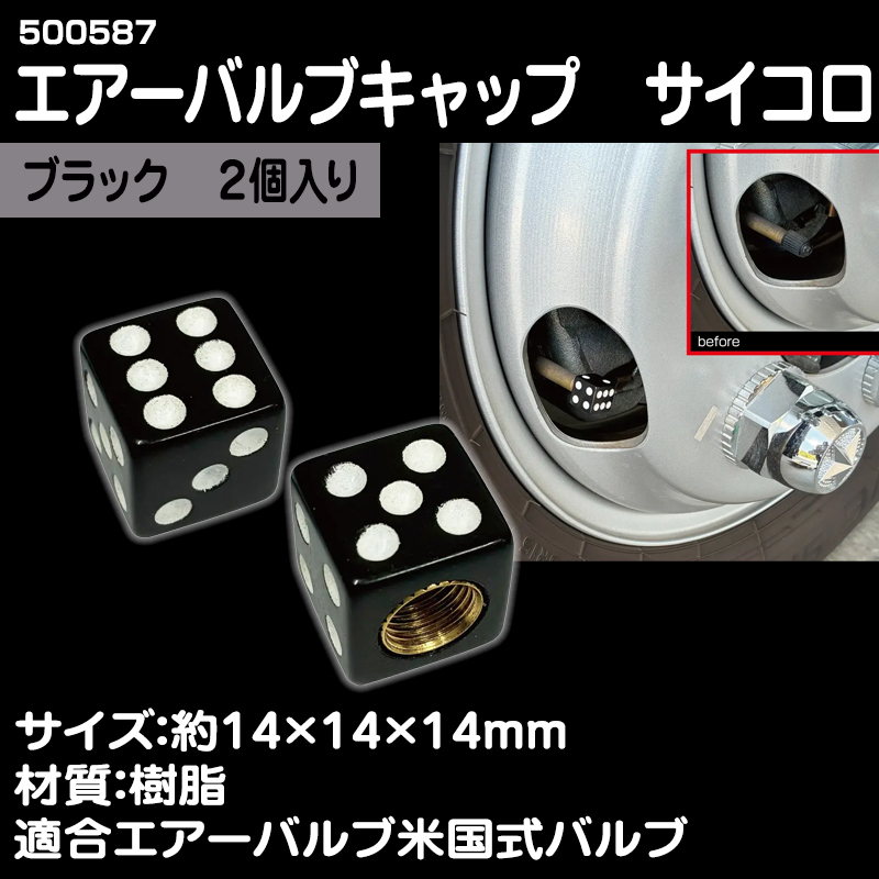 エアーバルブキャップ サイコロ 2個入り【ブラック】 #500587