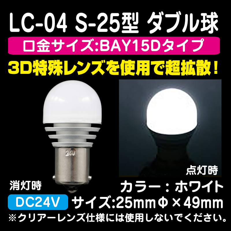 【24V専用】LC-04 S-25型 BAY15Dタイプ(ダブル球)【カラー:ホワイト】