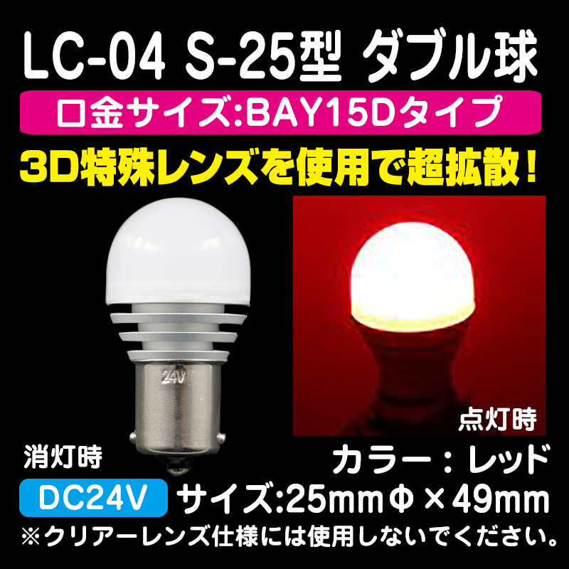 【24V専用】LC-04 S-25型 BAY15Dタイプ(ダブル球) 【カラー:レッド】