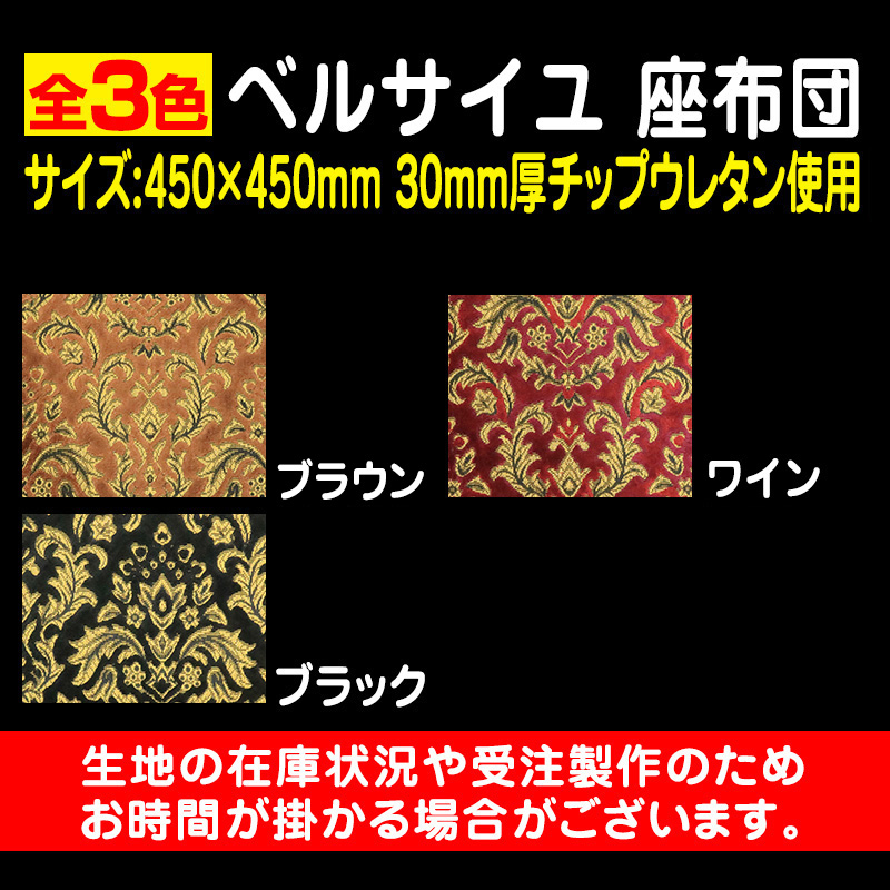 ベルサイユ 座布団(450×450mm/30mm厚チップウレタン使用)[全3色] サイズ選択可能 (受注製作品/代引き不可)