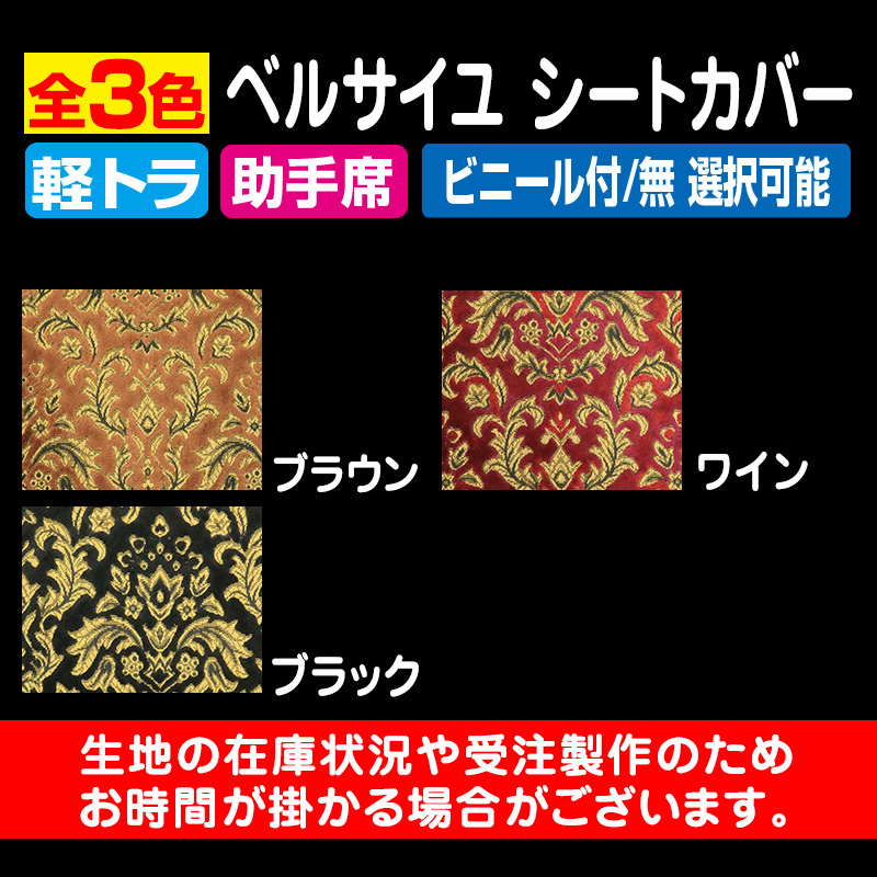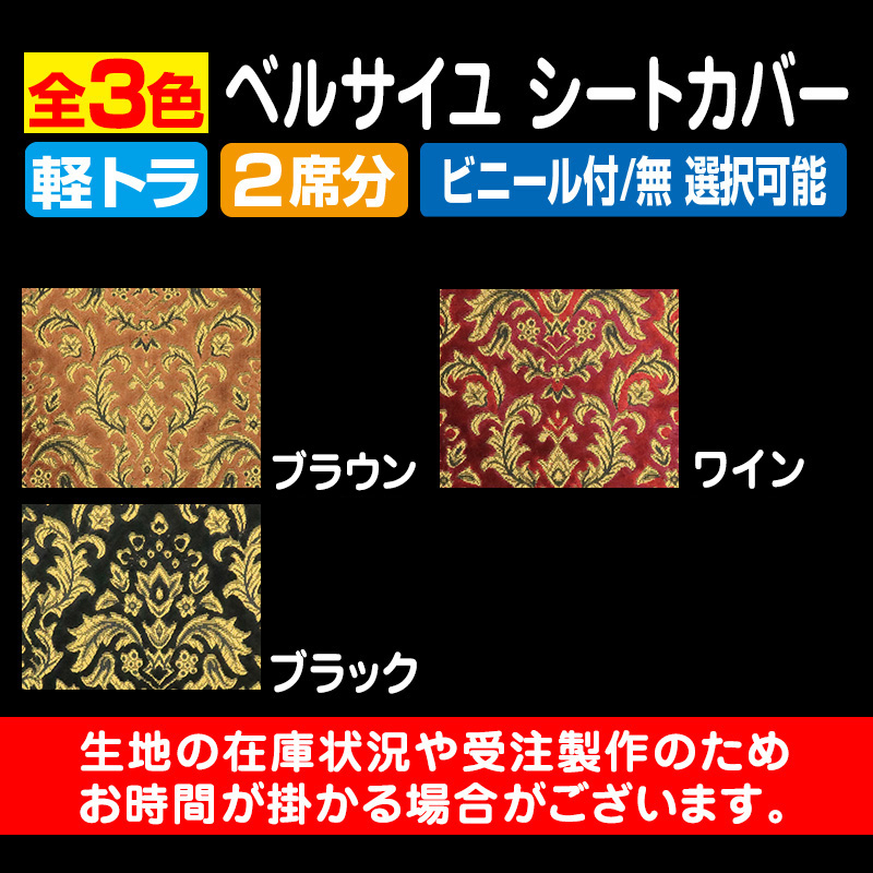 ベルサイユ シートカバー(軽トラ/2席)[全3色]ビニール付/無 選択可能 (受注製作品/代引き不可)