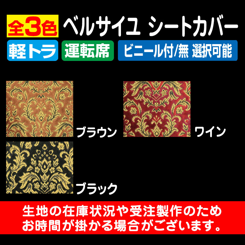 ベルサイユ シートカバー(軽トラ/運転席)[全4色]ビニール付/無 選択可能 (受注製作品/代引き不可)
