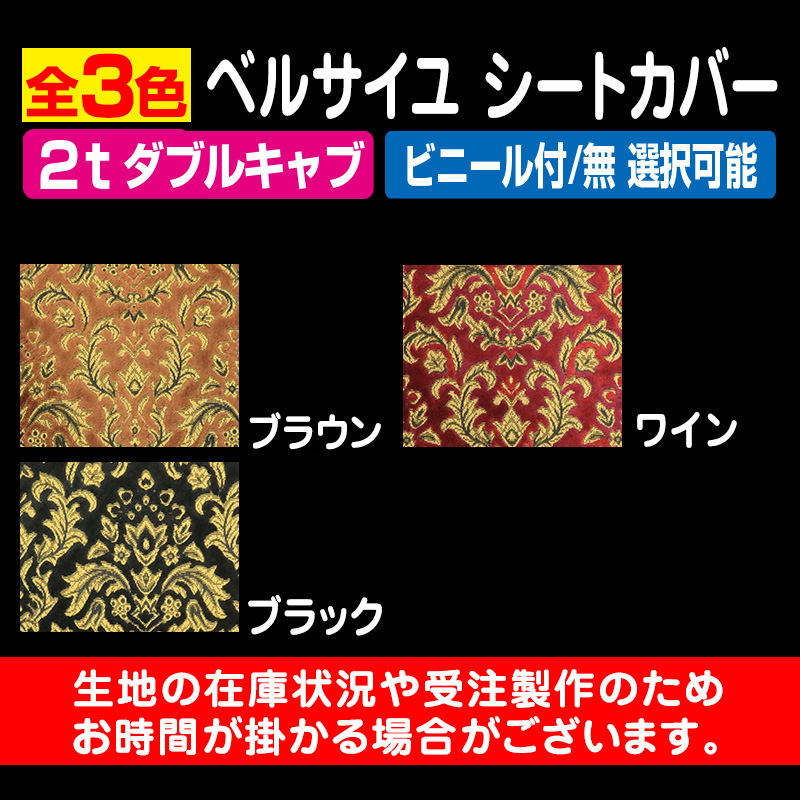 ベルサイユ シートカバー(2t/ダブルキャブ)[全4色]ビニール付/無 選択可能 (受注製作品/代引き不可)