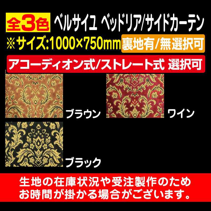 ベルサイユ 仮眠カーテン[全3色] 裏地有/無 選択可能 (受注製作品/代引き不可)【2枚1台分】