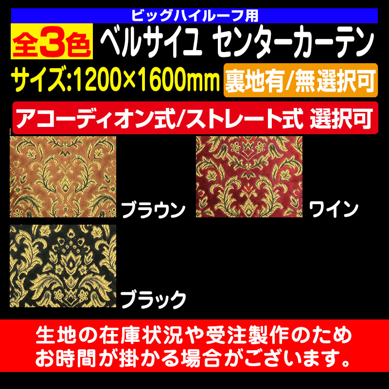 ベルサイユ センターカーテン(ビッグハイルーフ/1600mm)[全3色]裏地有/無 選択可能 (受注製作品/代引き不可)