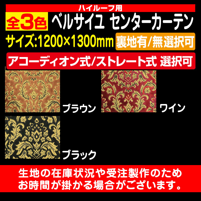 ベルサイユ センターカーテン(ハイルーフ/1400mm)[全3色] 裏地有/無 選択可能 (受注製作品/代引き不可)【2枚1台分】
