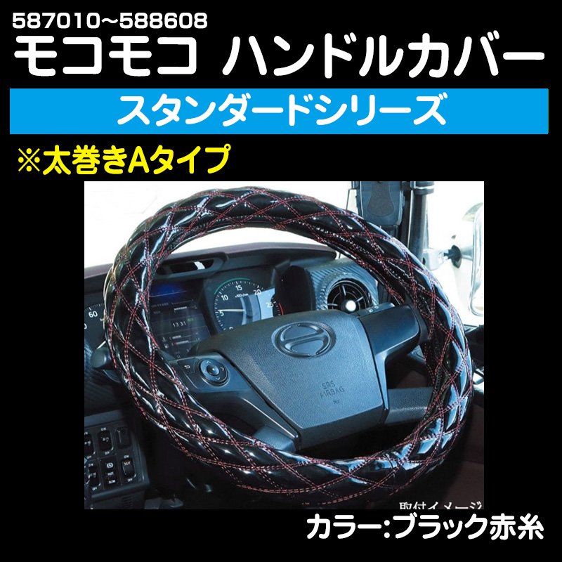 モコモコハンドルカバー 『スタンダードシリーズ』太巻きAタイプ ブラック赤糸