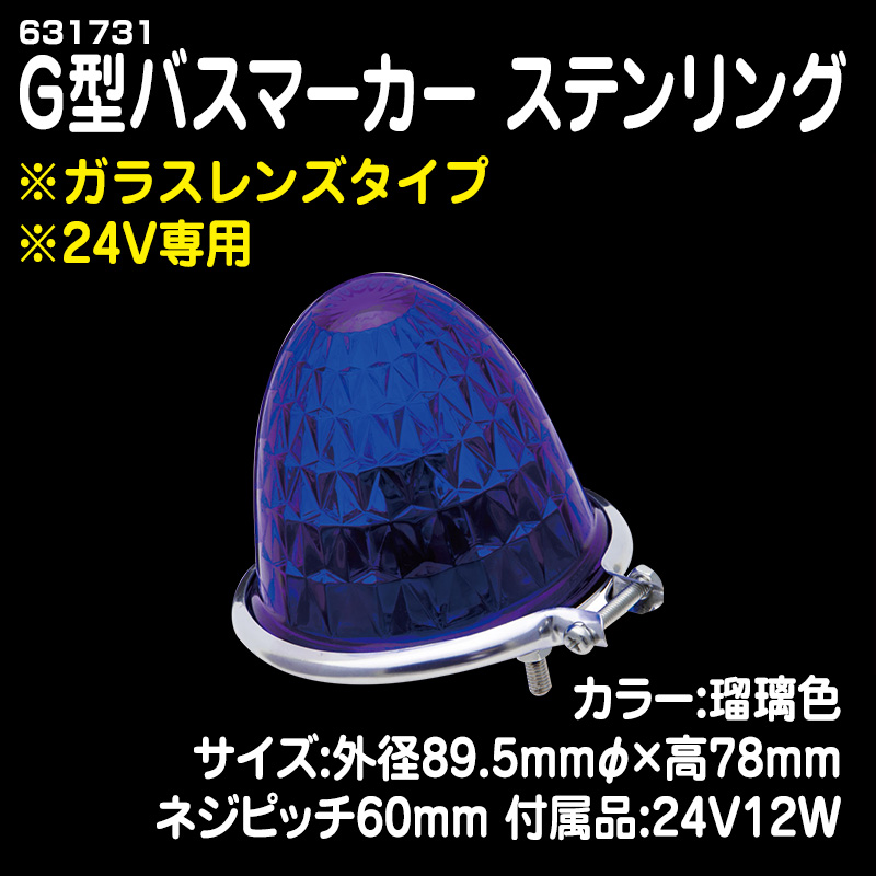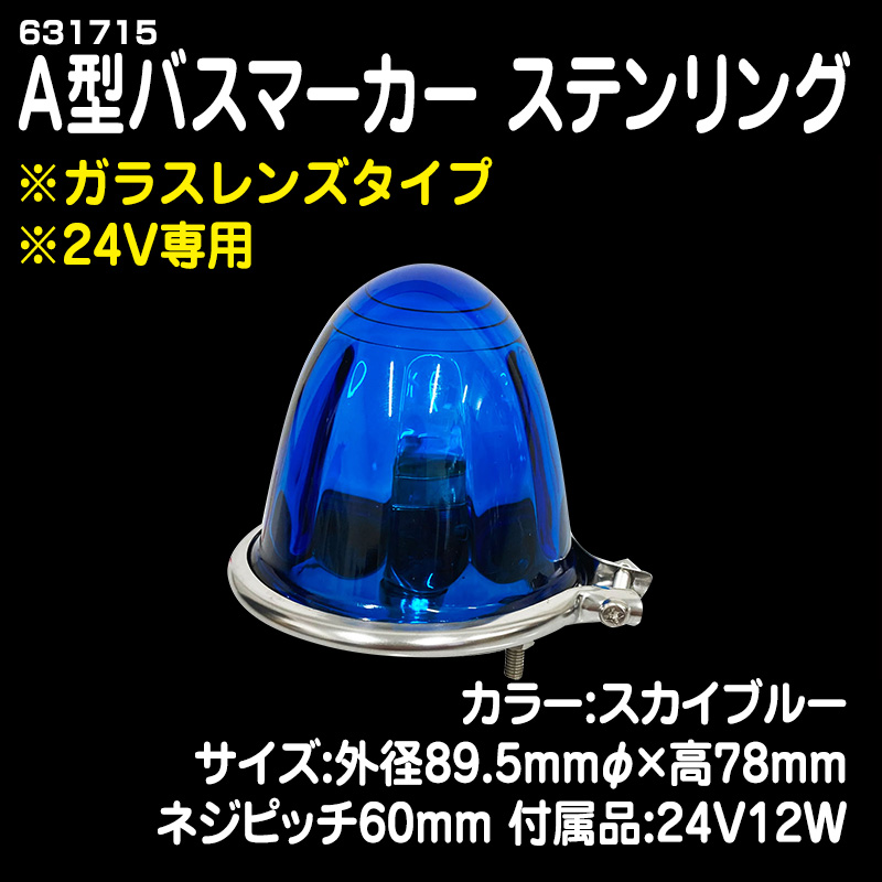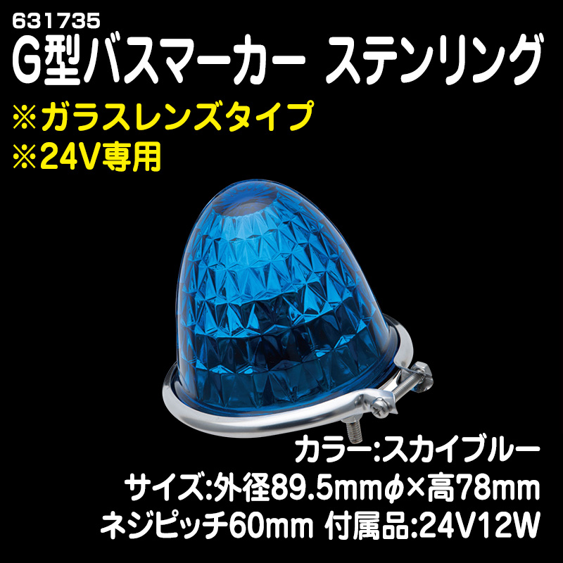 G型バスマーカー ステンリング[ガラスレンズタイプ]スカイブルー 24V専用 631735