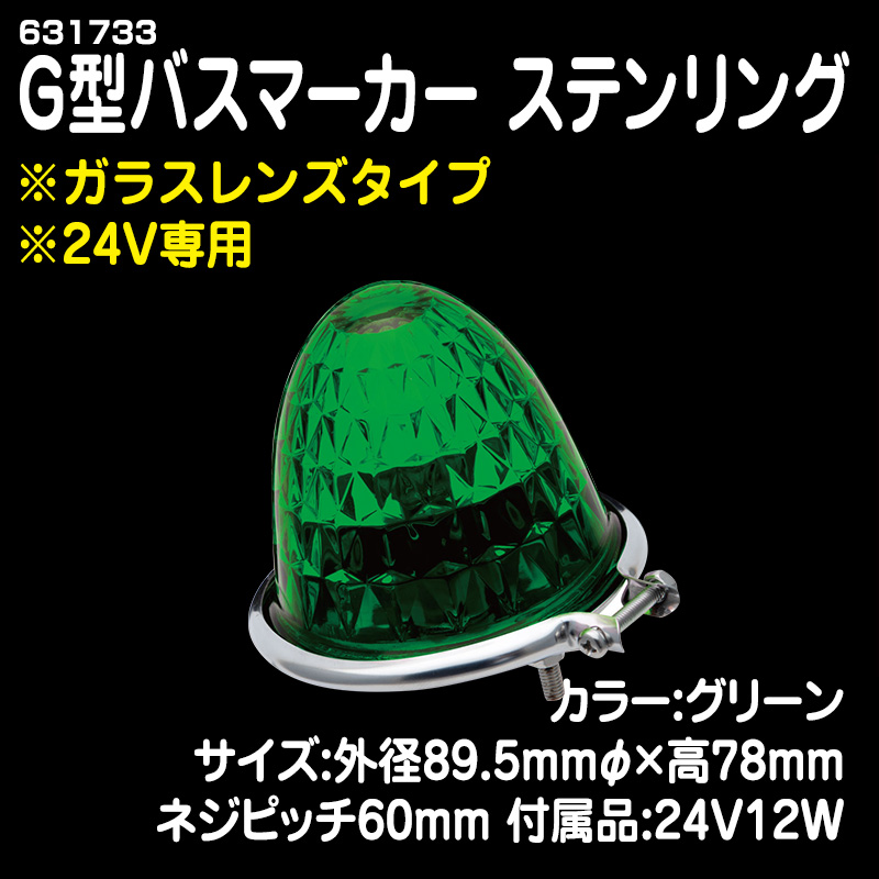 A型バスマーカー ステンリング[ガラスレンズタイプ]グリーン 24V専用