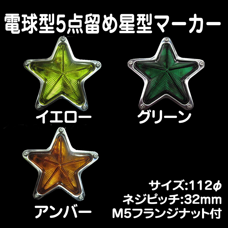 電球型 5点留め星型マーカー グリーン、イエロー、アンバー