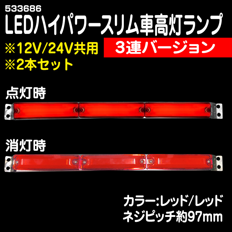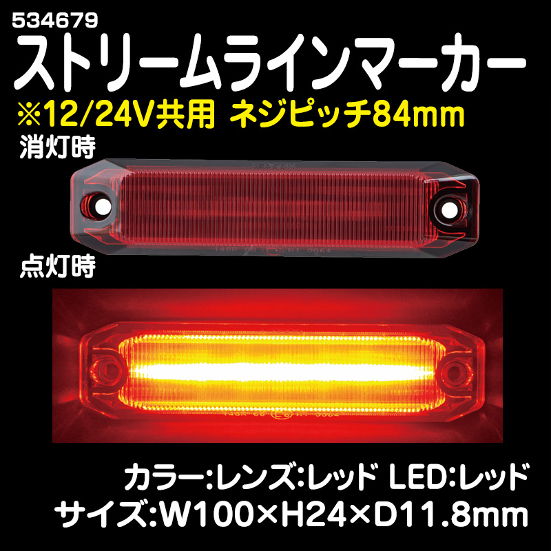 24V 流星ReLED6車高灯3連ステーバージョン レッド/レッド 左右2個セット