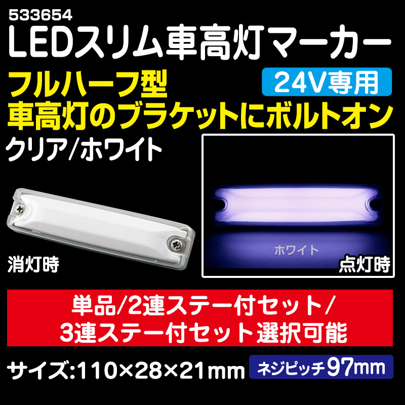 24V 流星ReLED6車高灯3連ステーバージョン クリア/ホワイト 左右2個セット