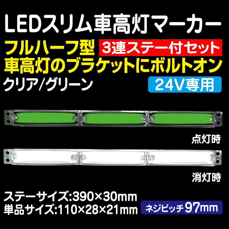 24V 流星ReLED6車高灯3連ステーバージョン クリア/グリーン 左右2個セット