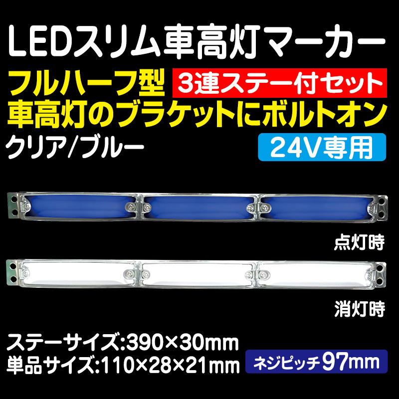 24V 流星ReLED6車高灯3連ステーバージョン クリア/ブルー 左右2個セット