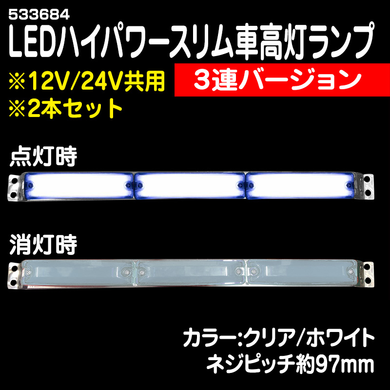 [2本セット価格]LEDハイパワースリム車高灯ランプ<3連バージョン> クリア/ホワイト #533684