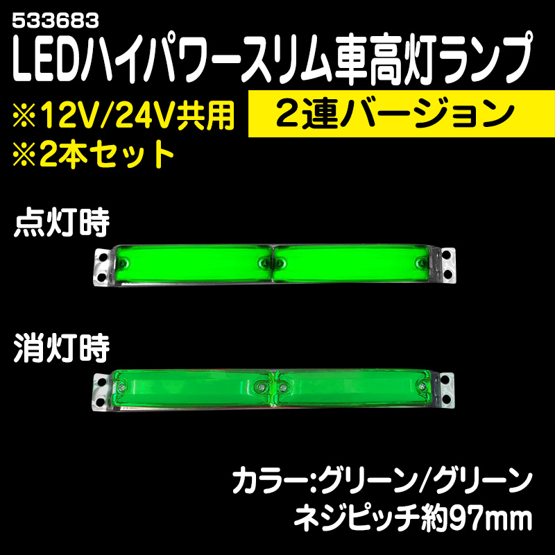 [2本セット価格]LEDハイパワースリム車高灯ランプ <2連バージョン>グリーン/グリーン #533683