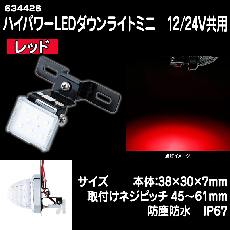 ハイパワーLEDダウンライトミニ 12/24V共用【レッド】634426