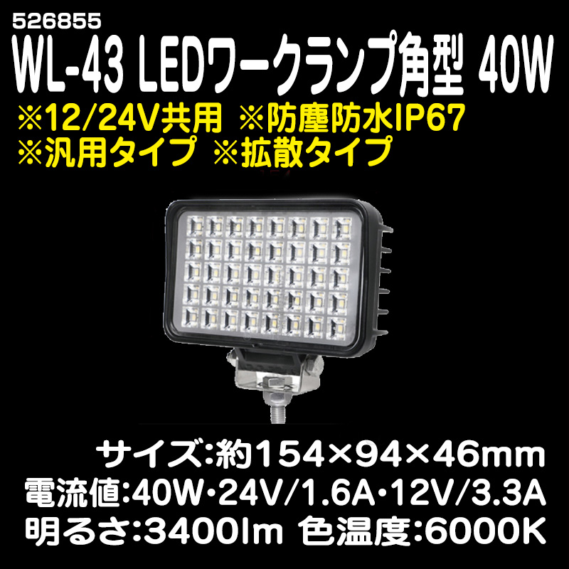 WL-43 LEDワークランプ角型 40W(12V/24V共用)526855