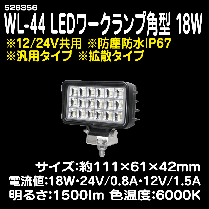 WL-44 LEDワークランプ角型 18W(12V/24V共用)526856