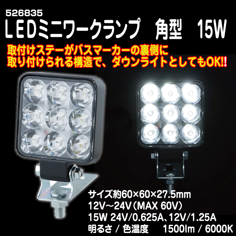 LEDミニワークランプ 角型 15W(12V/24V共用)#526835