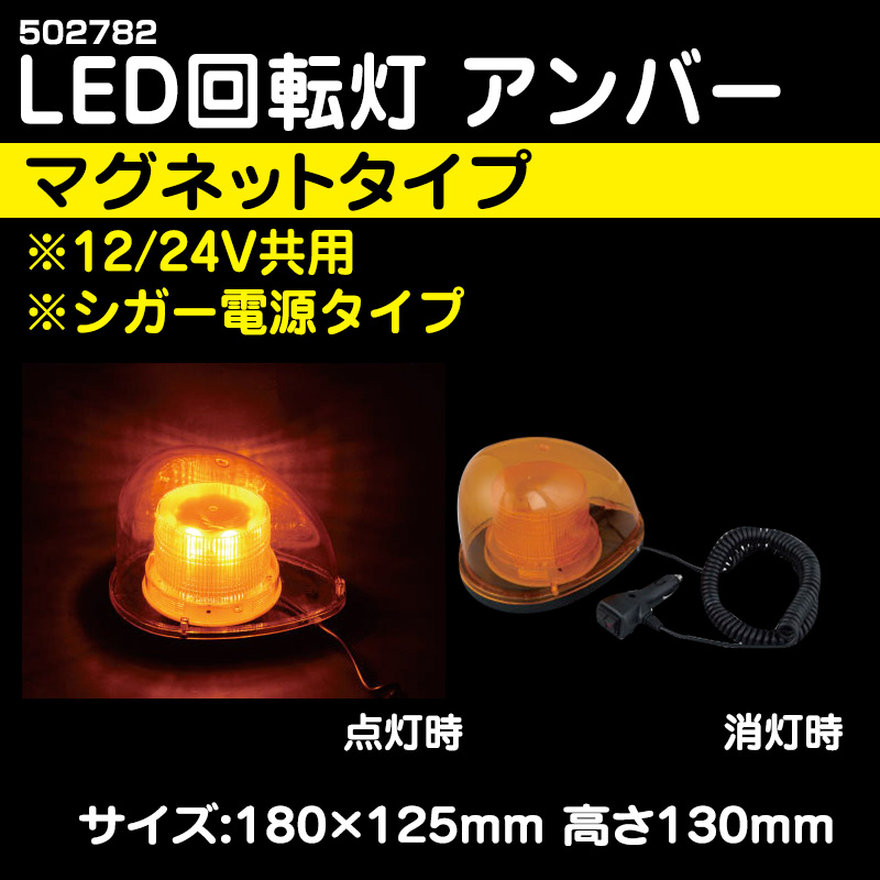 LEDミニ回転灯 アンバー 12V/24V共用マグネットタイプ【502322】