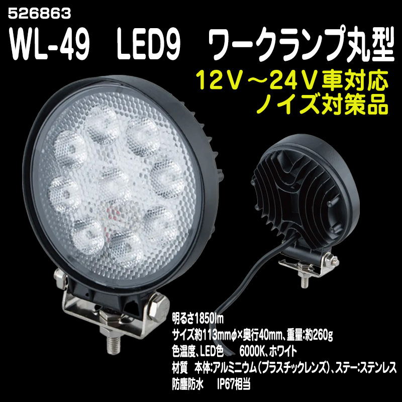 WL-49 LED9 ワークランプ丸型(12V/24V共用)【526863】