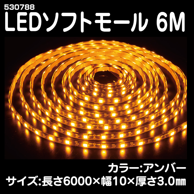 LEDソフトモール 6M 24v専用 貼付式(両面テープ) アンバー #530788