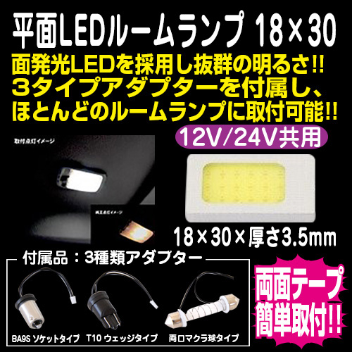 LED平面ルームランプ 18×30 厚さ3.5mm 12V/24V共用