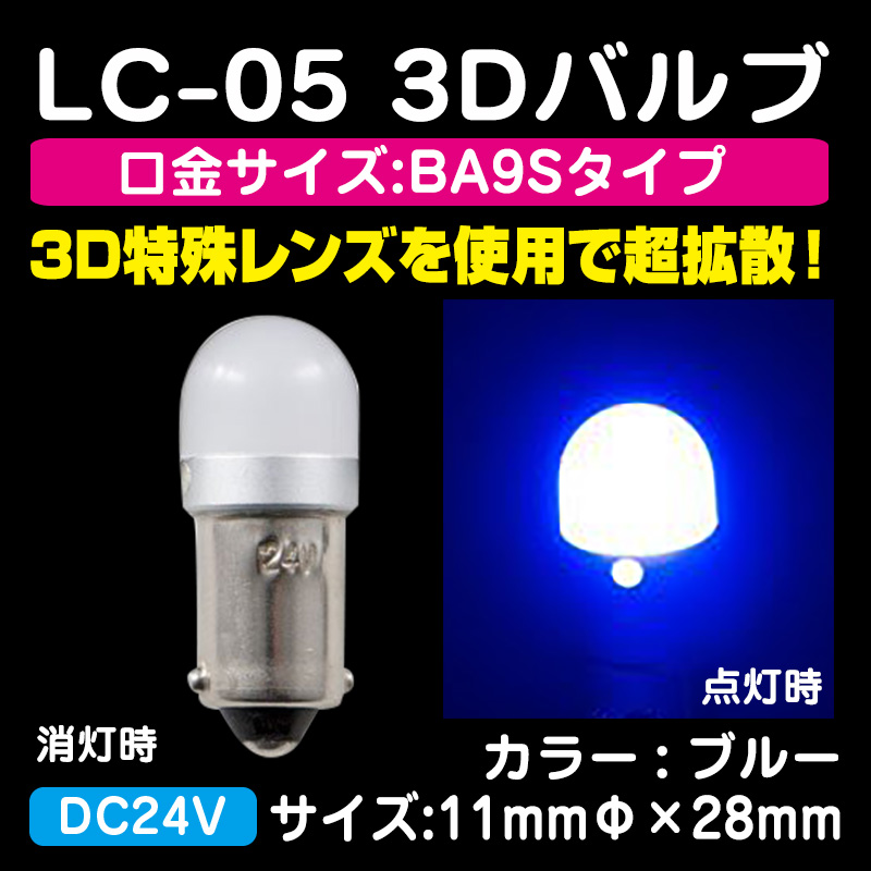 【24V専用】LC-05 BA9Sタイプ 3Dバルブ ※角マーカー/パイロット球サイズ【カラー:ブルー】