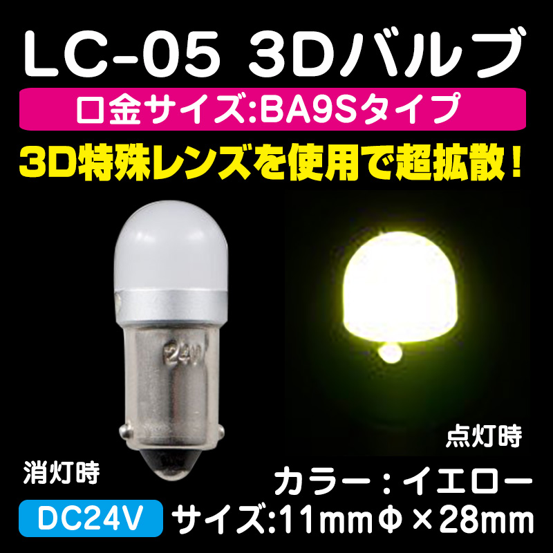 【24V専用】LC-05 BA9Sタイプ 3Dバルブ ※角マーカー/パイロット球サイズ 【カラー:イエロー】