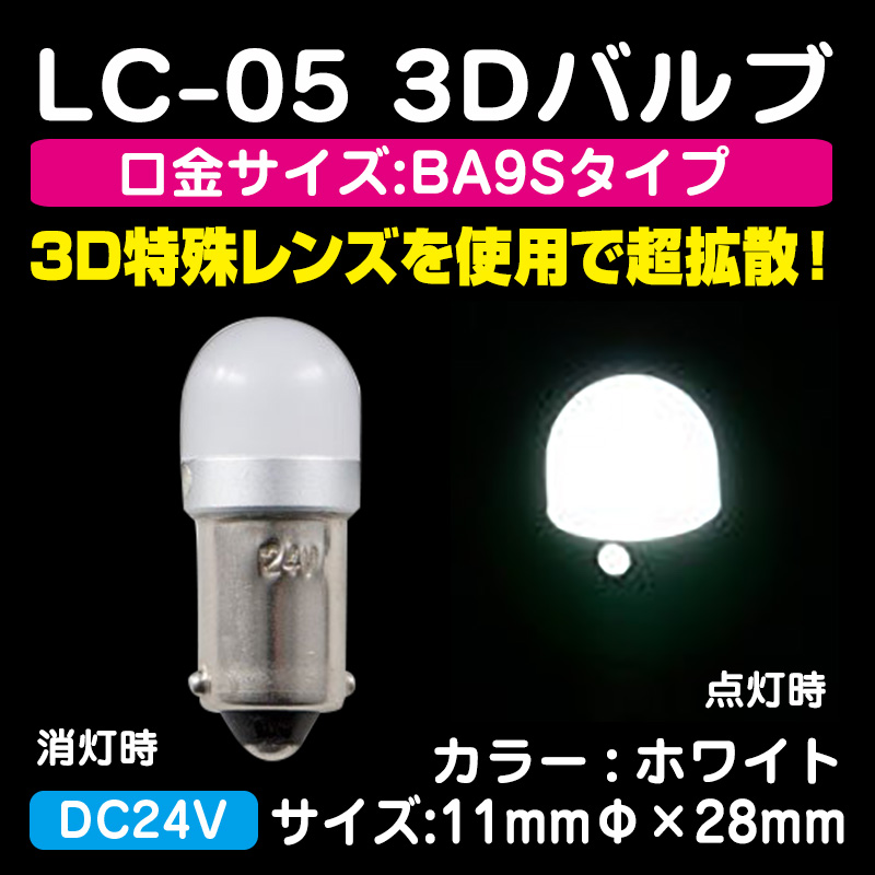 【24V専用】LC-05 BA9Sタイプ 3Dバルブ ※角マーカー/パイロット球サイズ 【カラー:ホワイト】
