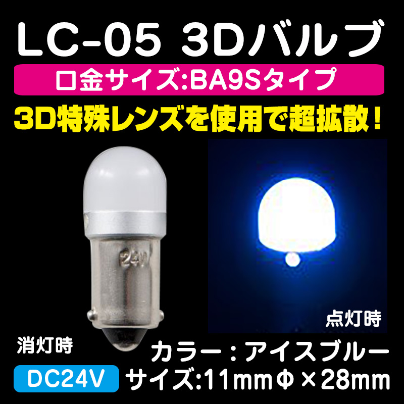 【24V専用】LC-05 BA9Sタイプ 3Dバルブ ※角マーカー/パイロット球サイズ 【カラー:アイスブルー】