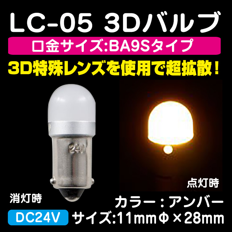 【24V専用】LC-05 BA9Sタイプ 3Dバルブ ※角マーカー/パイロット球サイズ 【カラー:アンバー】