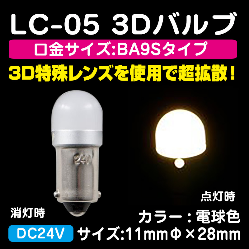 【24V専用】LC-05 BA9Sタイプ 3Dバルブ ※角マーカー/パイロット球サイズ【カラー:電球色】